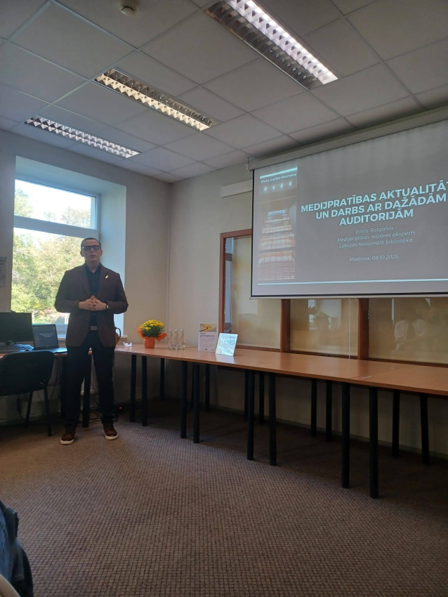 LNB Bibliotēku attīstības centra medijpratības nozares ekspertam Emīlam Rotgalvim par iespēju ielūkoties medijpratības aktualitātēs un darbā ar dažādām auditorijām, kā arī par ieskatu