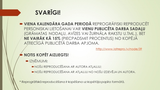 * Reprogrāfiskā reproducēšana ir kopēšana uz kopētāja papīra formātā.