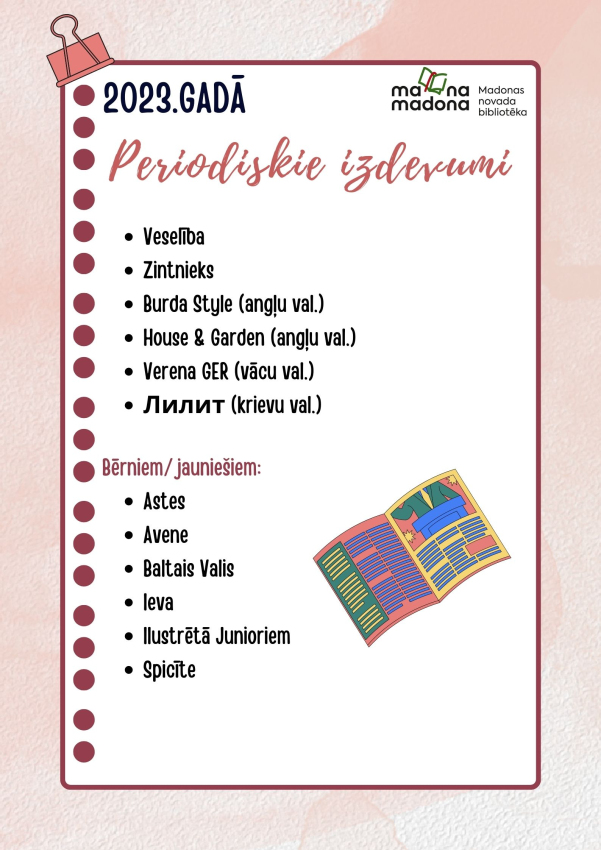 Aicinām iepazīties, kādi periodiskie izdevumi Madonas novada bibliotēkā būs pieejami 2023. gadā.