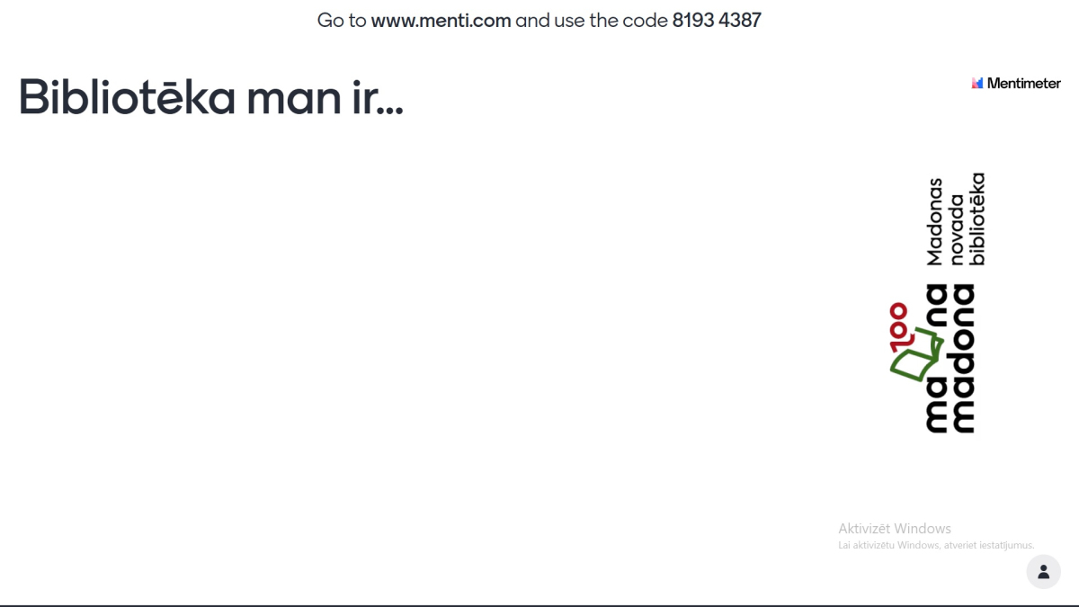 Bibliotēkas jubileju ar dažādām aktivitātēm atzīmēsim visa gada garumā, taču tieši šodien vēlamies uzzināt, “Kas Jums ir bibliotēka…❓”. ➡️➡️➡️Savas atbildes varat rakstīt šī ieraksta komentāru sadaļā, vai veidot kopīgu bibliotēkas vārdu mākoni platformā menti.com, ievadot kodu 81934387.