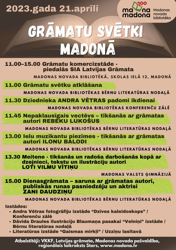 11.00 –15.00 – Grāmatu komercizstāde Madonas novada bibliotēkā – piedalās SIA Latvijas Grāmata - Skolas ielā 12