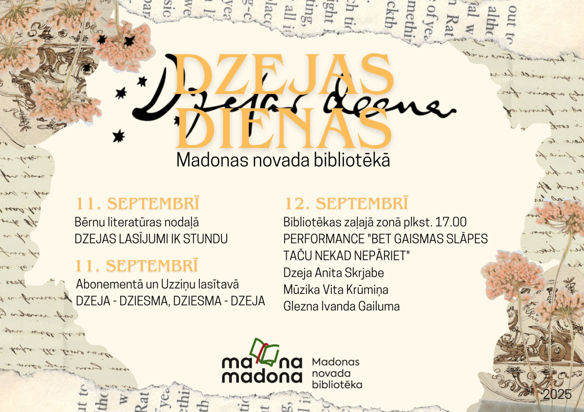 Aicinām visus – gan lielus, gan mazus – pievienoties Dzejas dienu pasākumiem Madonas novada bibliotēkā!