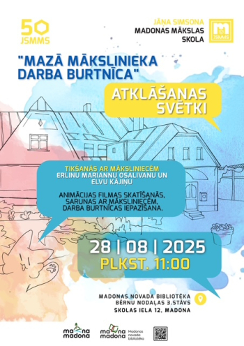 Jāņa Simsona Madonas mākslas skola aicina uz “Mazā mākslinieka darba burtnīcas” atklāšanas svētkiem Madonas novada bibliotēkā!