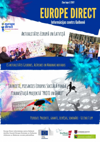 Augustā ir iznākusi Europe Direct Informācijas centra Gulbenē ceturtā ziņu lapa. Šajā numurā var uzzināt par aktualitātēm visā Eiropas Savienībā, Latvijā, par aktuālo Alūksnes, Gulbenes un Madonas novados, kā arī par ES piedāvātajām iespējām - projektiem, grantiem, u.t.t.