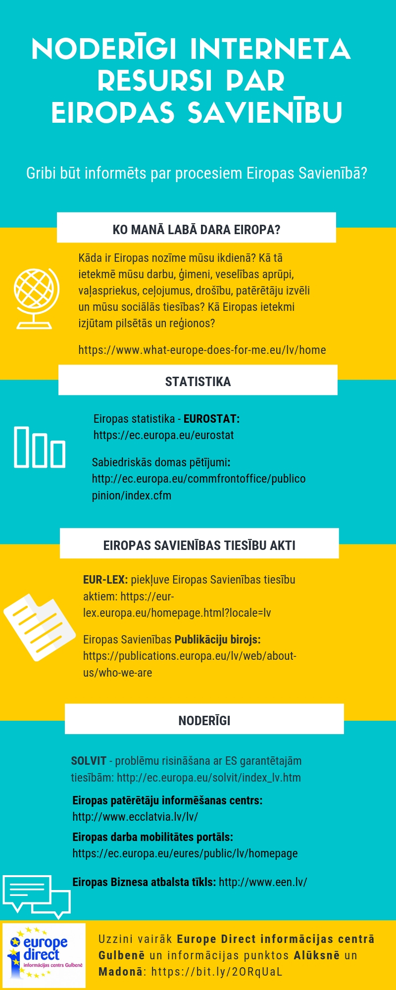 Europe Direct informācijas centrs Gulbenē ar informācijas punktiem Alūksnē un Madonā izveidojuši infografikas, kas paredzētas dažādām mērķauditorijām un dažādām vecuma grupām.