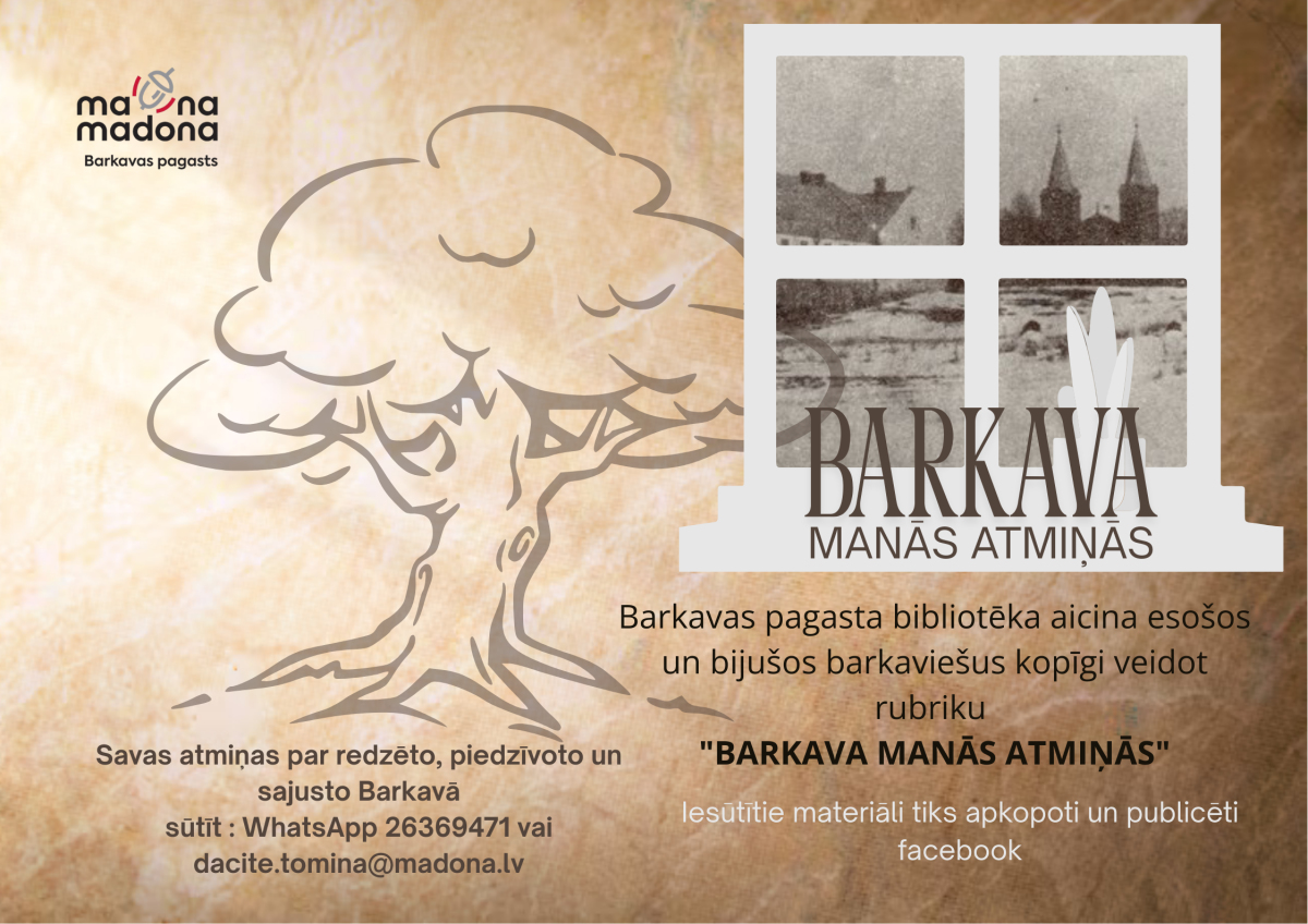 Veidosim mūsu Barkavas pagasta vietējo vēsturi caur jūsu atmiņām! Barkavas pagasta bibliotēka aicina esošos un bijušos barkaviešus kopīgi veidot rubriku "Barkava manās atmiņās”.
