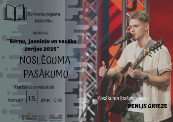 Barkavas pagasta bibliotēka aicina uz “Bērnu, jauniešu un vecāku žūrijas 2025” noslēguma pasākumu Barkavas pamatskolā 13. februārī.