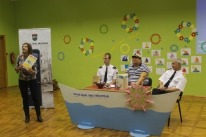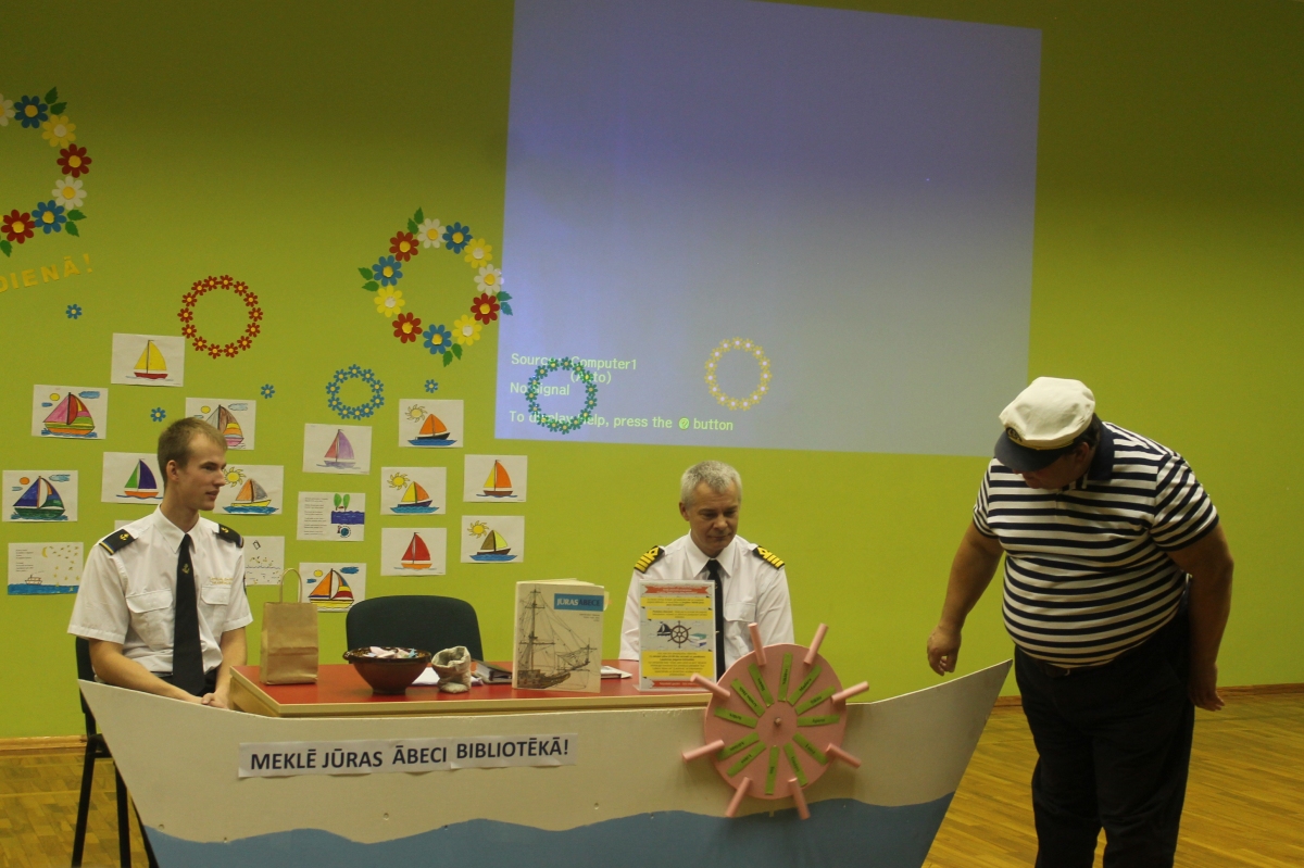 Atraktīvā bibliokuģa komanda interesentiem pastāstīja par jūrniecības arodiem un to priekšrocībām, liekot bērniem jau šodien atbildīgi sākt raudzīties uz saviem nākotnes plāniem. Tika vērsta uzmanība uz to, kas ir tās svarīgās lietas, kas sekmīgi būtu jāapgūst jau skolas solā, ja savu nākotni vēlētos saistīt ar jūrniecību.