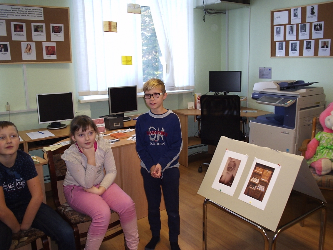 Latvijas simtgadi bibliotēkā svinējām kopā ar 2.klases skolēniem. Latvija un tautasdziesma – tie ir nesaraujami saistīti vārdi, jo dainās taču ir visa latviešu tautas dzīve. Bērnu veltījums Latvijai bija viņu izvēlētas un ilustrētas  tautasdziesmas. Pasākums sākās  ar bibliotekāres stāstījumu par  Krišjāni Baronu un dainu skapi. Bērni uzzināja arī to, kā dainas dalās pa tēmām. Arī mums bija pajukušas dažas lapiņas ar tautasdziesmām, kurām vajadzēja atrast savu īsto vietiņu, un pie viena arī noklausīties, kā tās skan. Kad uzdevums bija izpildīts, skolēni skaitīja savas izvēlētas dainas. Tas bija ļoti sirsnīgi! Vēl viens uzdevums bija – jāatšifrē, kāda tautasdziesma slēpjas zem bilžu simboliem. Kad uzdevums bija paveikts, visus iepriecināja svētku kliņģeris. Bibliotekāre ciemiņiem dāvināja Latvijas simbolu – karodziņu kastanī. Tika izveidota skolēnu ilustrēto tautasdziesmu izstāde.