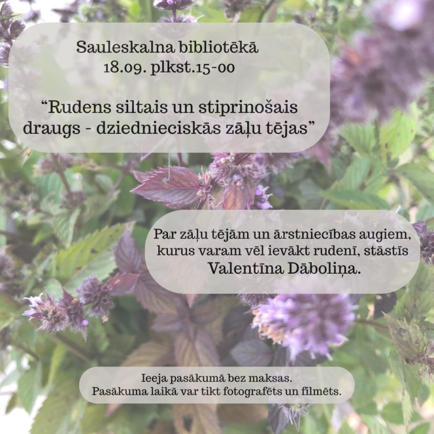 Rudens vēsie rīti un lietus aiz loga atgādina, ka laiks dzert zāļu tējas. Gan omulībai tumšā vakarā, gan veselībai. Mūsdienās plašs zāļu tēju klāsts ir pieejams aptiekās, taču vākt zāļu tēju pašiem - tas ir īpašs piedzīvojums un izjūtas.
