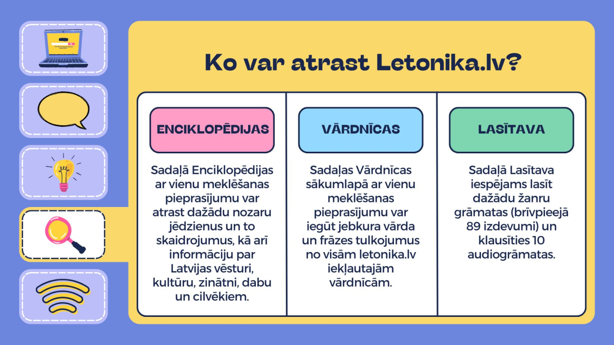 Letonika.lv iespējams atrast atbildes uz interesējošiem jautājumiem un lasīt literatūru tiešsaistē.