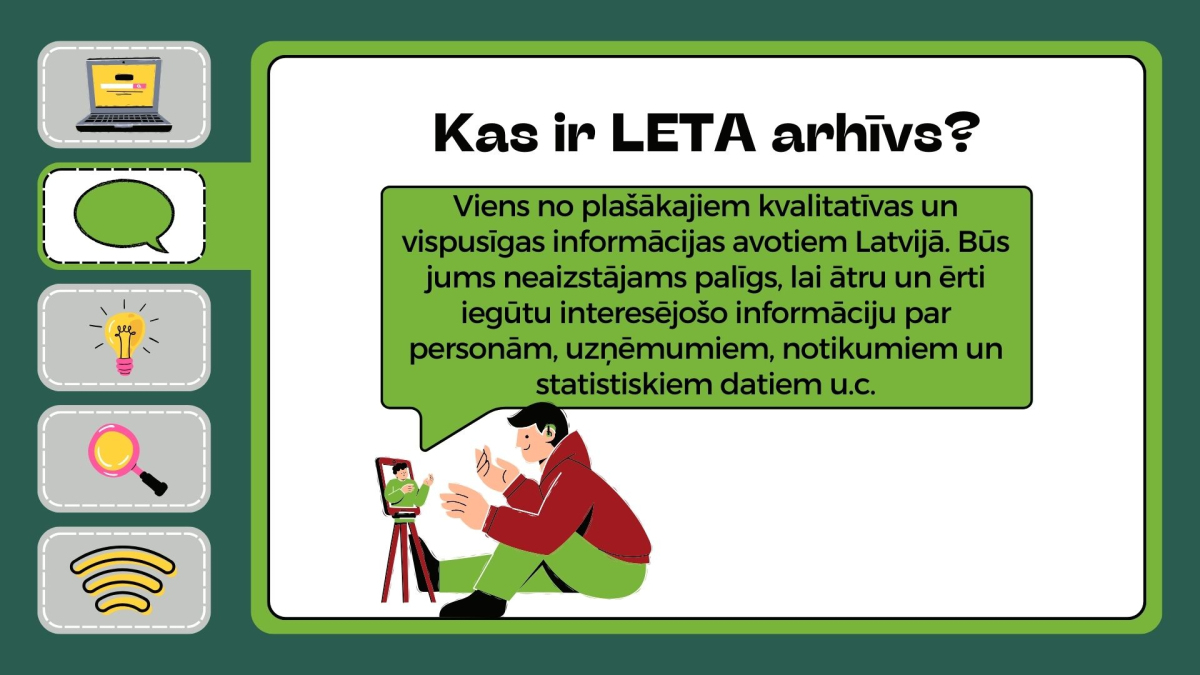 LETA arhīvā uzkrātie materiāli ļauj iegūt pilnīgu informāciju, kā arī viegli un ātri analizēt un prognozēt notikumus laika gaitā.