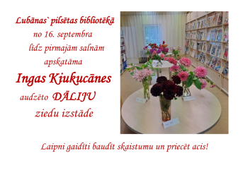 No 16. septembra Lubānas pilsētas bibliotēkā skatāma Ingas Kiukucānes audzēto dāliju ziedu izstāde.