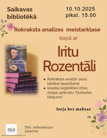 Praulienas pagasta bibliotēkas pakalpojumu sniegšanas vietā Saikavā 10.oktobrī aicināti piedalīties Rokraksta analīzes meistarklasē kopā ar Iritu Rozentāli.