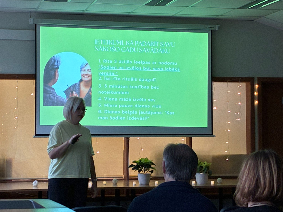 Pasākuma laikā lektore uzsvēra apzinātības nozīmi, empātiju un spēju ievērot iekšēju mieru pat brīžos, kad darba vide ir intensīva. Prezentācijā tika piedāvāti praktiski ieteikumi nākamajam gadam – sākot ar īsiem rīta rituāliem un apzinātām izvēlēm dienas gaitā līdz vakara pašrefleksijai.
