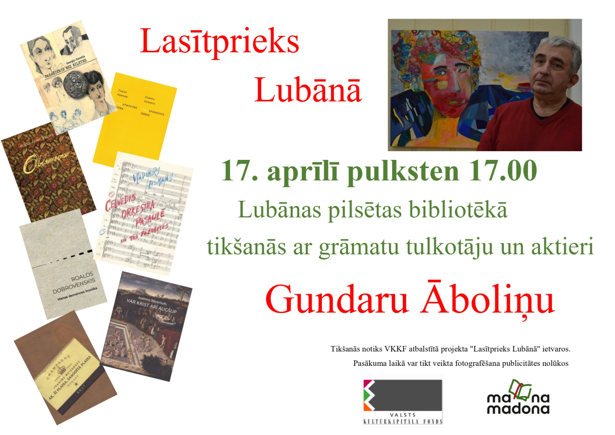 Laipni aicināti visi interesenti un mākslinieka talanta cienītāji piedalīties šajā brīnišķīgajā iespējā- tikties ar Gundaru Āboliņu tuvplānā Lubānas pilsētas bibliotēkā!
