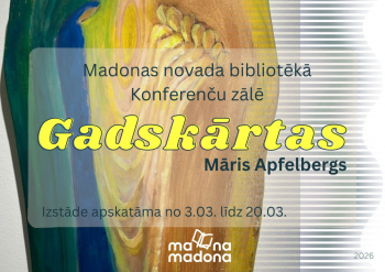 No 2026. gada 3.marta līdz 2026. gada 20. martam Madonas novada bibliotēkas Konferenču zālē apskatāma mākslinieka, gleznotāja Māra Apfelberga izstāde “Gadskārtas”. Tajā iespējams redzēt gleznojumus, kas tapuši uz koka, papildināti ar mākslinieka radītām dzejas rindām.