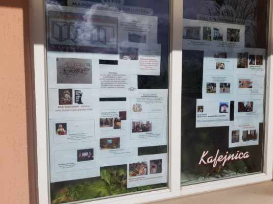 Kas ir bibliotēka, kas ir bibliotekārs, bibliotekārs agrāk un tagad : izstāde bibliotēkas logos.