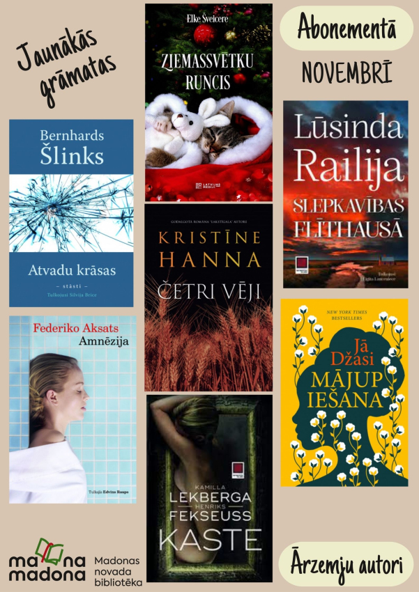 Madonas novada bibliotēkas jauno grāmatu piedāvājums novembrī, tajā skaitā LNB Bibliotēku attīstības centra "Vērtīgo grāmatu iepirkuma 2022" otrais grāmatu pievedums.