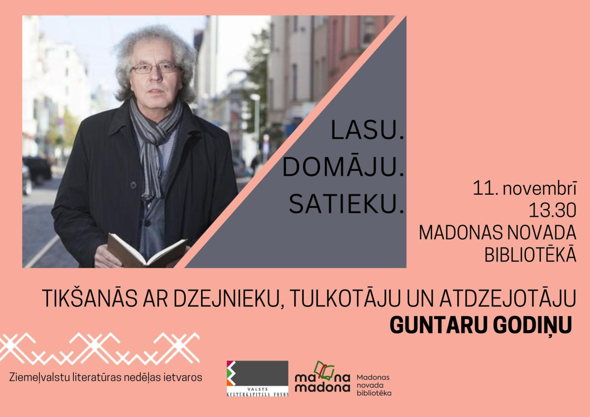Madonas novada bibliotēka 11. novembrī plkst. 13.30.piedāvā tikšanos ar dzejnieku, tulkotāju un atdzejotāju Guntaru Godiņu.