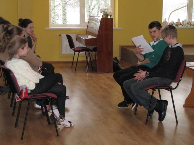 5. februārī tikāmies ar Sandiju Kalniņu, Edgaru Niklasonu un Rihardu Svjatski Madonas pilsētas 1. vsk. un Madonas novada bibliotēkā. Runājām par jauno dramaturgu iespējām, sadarbību ar teātriem, par jaunajām idejām, strādājot ar jauniešiem teātrī un radošajā apvienībā „Siltumnīca", par konkursiem Latvijā, Baltijā, Lūgums bija palasīt kādu fragmentiņu no saviem darbiem, protams, tas ir grūtāk kā dzejniekiem, bet tomēr… R. Svjatskis lugas „Cukura tabletes” fragmenta lasījumā iesaistīja skolēnus. Runājām par Dirty Deal Teatro jaunajām idejām un projektiem, par veiksmēm konkursos, piedalīšanos dramaturģijas darbnīcās Igaunijā, Spānijā, Čehijā, lasījumiem radio „10 minūtes slavas”. Tika runāts par rakstīšanu vispār, par to, cik viegli vai grūti radīt lugu tekstus. Sandija uzsvēra, ka rakstīt dramaturģiju ir grūtāk , jo tas nav tikai literārs darbs, visu laiku jāatceras, ka pamatā ir darbība. Dramaturgs ataino realitāti, bet visu laiku meklē neparasto raksturos, kas uzrunātu cilvēkus, vēlams, pozitīvi. Sarunas izvērtās arī par to, vai komunikācija interneta vidē ir droša, kā ir ar autortiesībām, ar lugu tekstu pieejamību, ar sevis, sava darba cieņu.