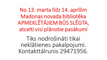 Madonas novada bibliotēkas darba kārtība ārkārtas situācijas laikā.