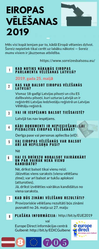 Plašāka informācija par Eiropas vēlēšanām pieejama: http://bit.ly/EUE2019.