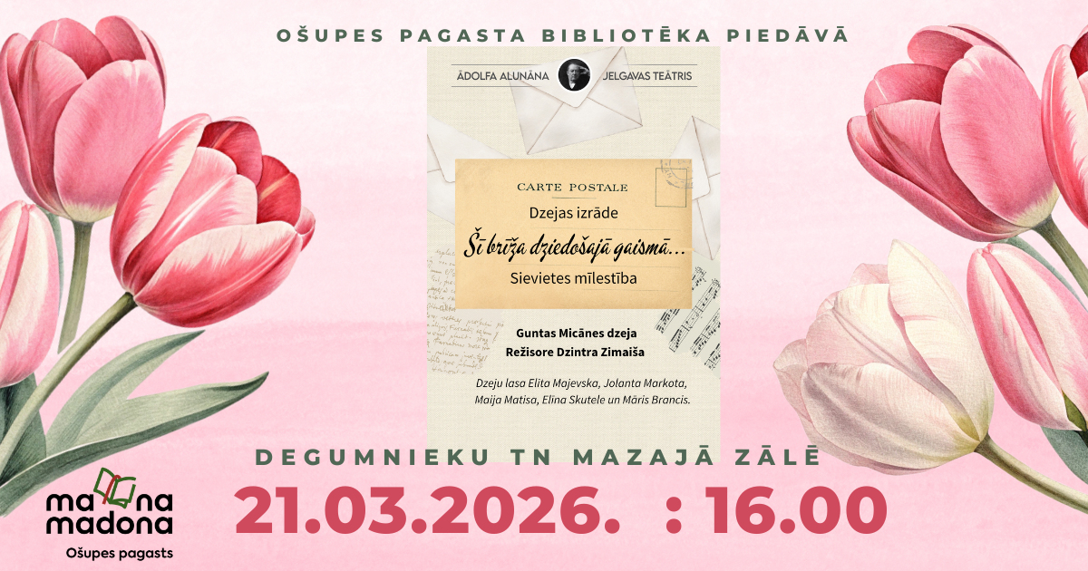 Ir sajūta, ka martā gaisā virmo mīlestība, tāpēc ir īstais laiks ieklausīties Ādolfa Alunāna Jelgavas teātra aktieru E.Majevskas, J.Markotas, M.Matisas, E.Skuteles un M.Branča balsīs, kuri izjusti un emocionāli iepazīstinās ar Guntas Micānes dzeju. G.Micāne ir dramaturģe, dzejniece, filoloģe, rakstniece un skolotāja, kuras dzīve saistīta ar Jelgavu. Dzejniece rakstījusi gan bērniem, gan pieaugušajiem, un viņas dzejoļus par mīlestību Ā.Alunāna Jelgavas teātrī iestudējusi režisore Dzintra Zimaiša.