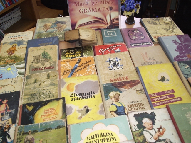 Ar lielu interesi skolēni apskatīja grāmatas, kas nāk no tālās viņu vecāku un vecvecāku bērnības.