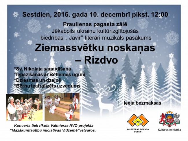 kultūrizglītojošās biedrības „ Javir’’ literāri muzikāls pasākums Ziemassvētku noskaņas – Rizdvo.