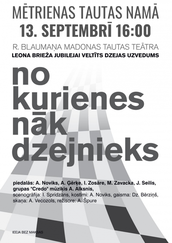 Plkst.16:00 Mētrienas tautas namā aicināti apmeklēt uz R. Blaumaņa Madonas tautas teātra L. Brieža jubilejai veltīto dzejas uzvedumu "No kurienes nāk dzejnieks. "