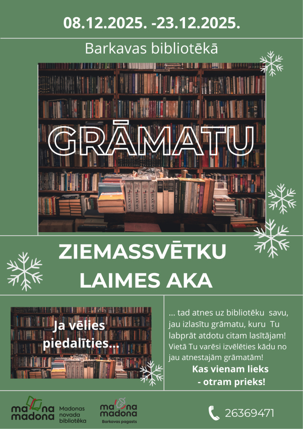 Lai piedalītos laimes akā, uz bibliotēku jāatnes sava, jau izlasīta grāmata, kuru labprāt atdotu citam lasītājam! Vietā varēsi izvēlēties kādu no jau atnestajām grāmatām! Kas vienam lieks, otram prieks!