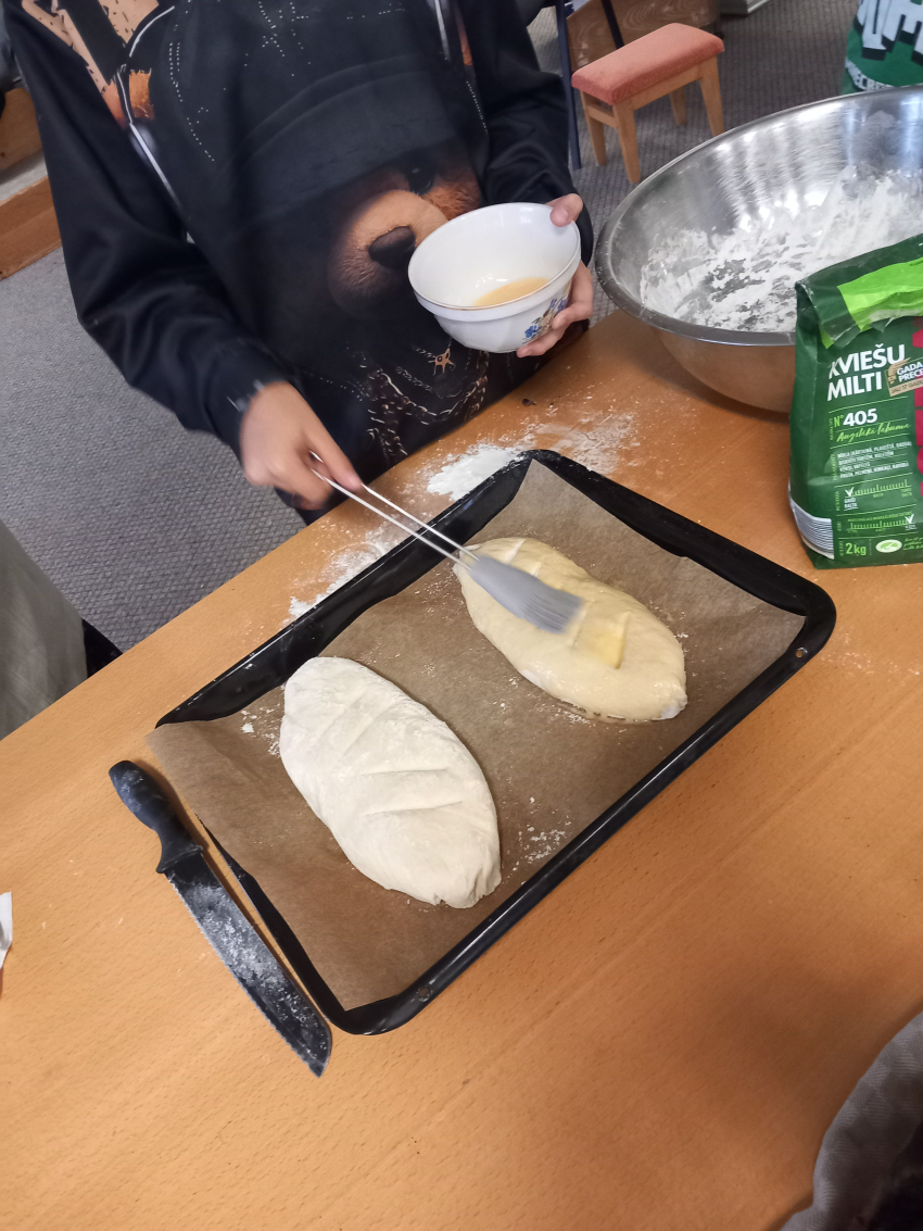 Mūsu pašu bibliotekārīte Ija ierādīja maizes cepšanas mākslu, sākot no sastāvdaļu jaukšanas līdz pat gatavam kukulītim.