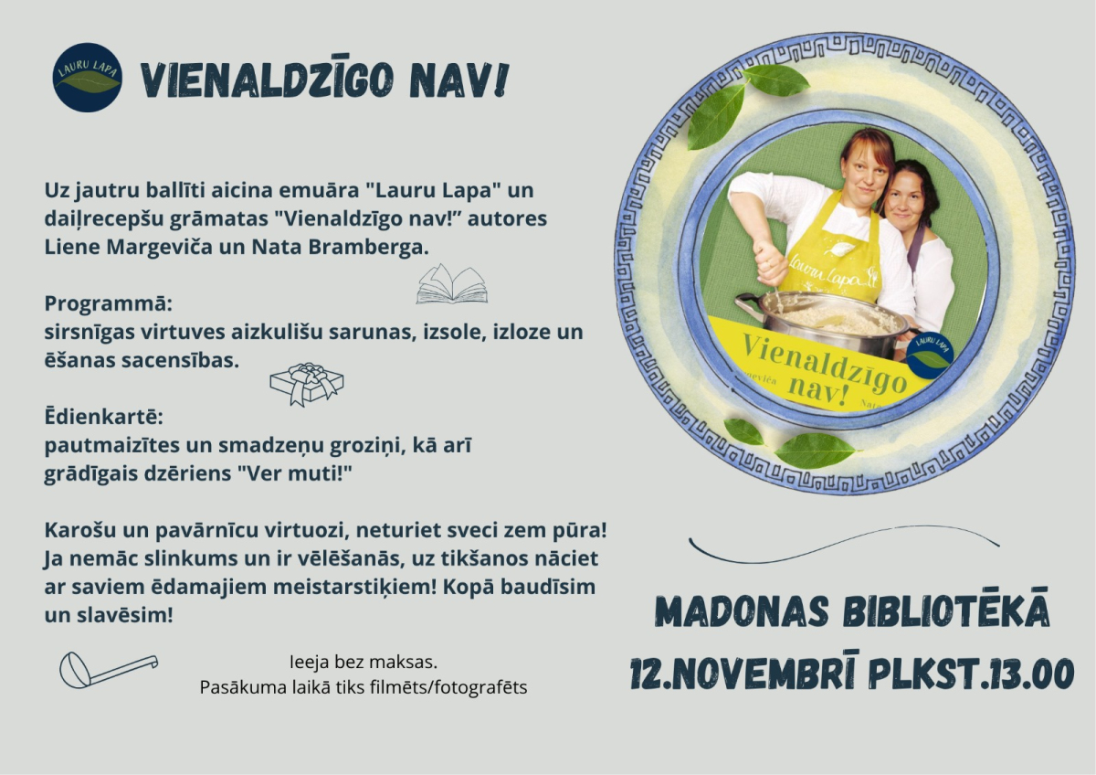 Iepazīstinot ar sevi, viņas saka: "Jau vairākus gadus interneta vidē (Facebook) dzirksteļo noslēpumainais humora un recepšu blogs LAURU LAPA. Noslēpumains, jo nevienam nav jausmas, kurš tad ir bloga autors. Pienācis brīdis noslēpumu atklāt. Izrādās, autori ir divi, turklāt tās ir viņas. Divas radošas un dzīvespriecīgas Cēsu puses dāmas – Liene Margeviča un Nata Bramberga. Bērnības draudzenes, kuras vieno eksperimentētāja gars virtuvē, neizsīkstoša humora izjūta un kopīgas atmiņas par bērnu dienām Skujenē, kad pieredzēts daudz aizkulišu ainiņu no lauku ēdnīcas sadzīves."