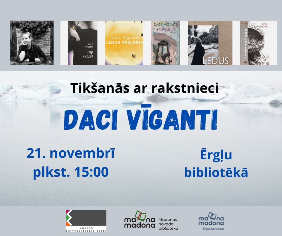 - novembrī plkst. 15.00 aicinām apmeklēt Ērgļu pagasta bibliotēku, kur viesosies rakstniece Dace Vīgante.