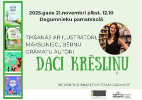 - novembrī plkst. 12.10 Degumnieku pamatskolā ar aizrautīgajiem lasītājiem tiksies ilustratore, māksliniece, bērnu grāmatu autore Dace Krēsliņa.