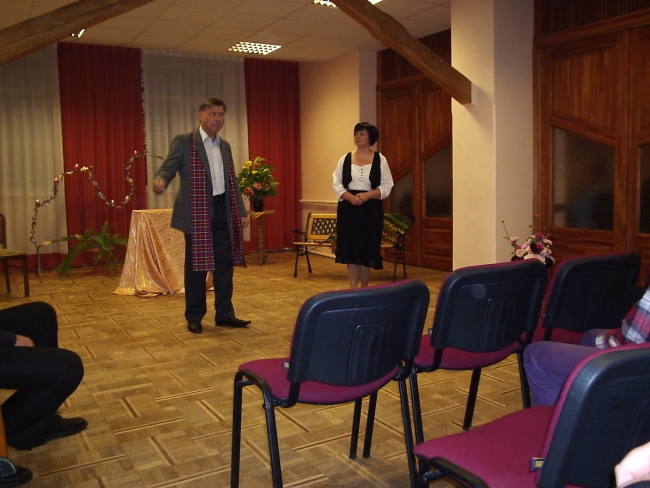 19.septembra vakarā Degumnieku tautas namā pulcējās kupls ļaužu pulciņš, lai satiktos ar Sarkaņu teātra “Piņģerots” aktieriem, kas iestudējuši Jāņa Grota mīlestības dzeju “Mīlestības zīmē. Arī Jānis Grots”.Grota dzeju viscaur raksturo bagāta jūtu dzīve. Kulmināciju tā sasniedz viņa mīlestības dzejoļos, it īpaši cikļā “Vēstules Solveigai”. Savukārt Ārijas Elksnes Solveiga rakstījusi atbildes savam slinkajam Pēram Gintam. Un visu šo krāšņo dzejas buķeti saņēmām mēs – klausītāji. Mīļš paldies “Piņģerota” aktieriem Agitai Auzānei, Ivetai Āboliņai, Kristīnei Ozolai, Didzim Akmentiņam, Edgaram Janovskim, Aigaram Krīgeram, Robetam Kubam un viņu režisorei Guntai Apelei par brīnišķīgo dzejas vakaru. Dzeja un dziesma iet roku rokā. Sirsnīgi skanēja arī aktieru izpildījumā dziedātās dziesmas, kam mūziku komponējusi Dace Kalniņa.