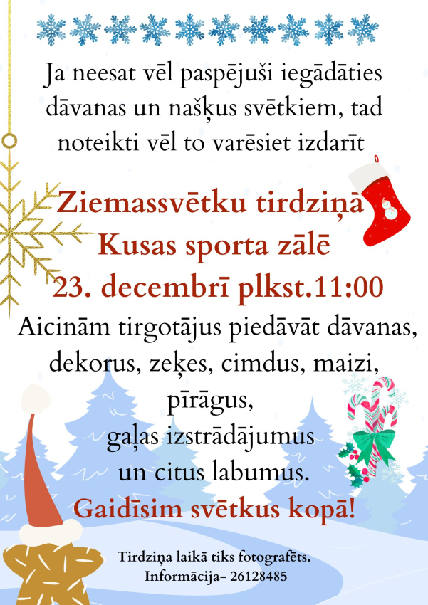 Visi mīļi aicināti uz gadskārtējo Ziemassvētku tirdziņu Kusā.