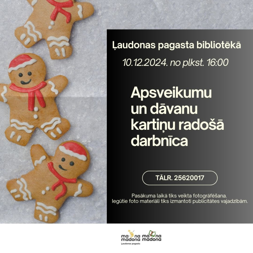 Tuvojoties decembrim, tuvojas arī vieni no skaistākajiem svētkiem – Ziemassvētki. Ziemassvētki ir laiks, kad saņemt apsveikumu kartiņu no draugiem, tuviniekiem vai kolēģiem ir īpaši patīkami! Vēl jo vairāk, ja tā ir pašu rokām darināta. Tāpēc Ļaudonas pagasta bibliotēka aicina ikvienu atnākt uz bibliotēku un izveidot savu īpašo kartiņu. Nepieciešamie materiāli tiks nodrošināti!