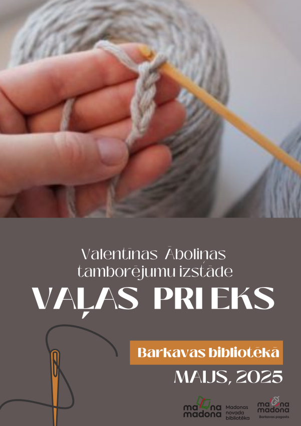 Gandrīz katrā mājā un ģimenē ir kāds, kuram ir savs hobijs jeb vaļasprieks. Kādam tā ir grāmatu lasīšana, kādam kūku cepšana, kādam tie ir rokdarbi. Rokdarbi – šī senā māksla tiek pārmantota no paaudzes uz paaudzi, pilnveidota, lai darinātu skaistas lietas savam un citu priekam. Tā, skatoties uz mammas aizraušanos ar rokdarbiem, šīs prasmes ir pārmantojusi madoniete Valentīna Āboliņa. Valentīna prot dažādus rokdarbu veidus – šūšanu, mezglošanu, adīšanu, pērlīšu rotu darināšanu, tamborēšanu. Eksperimentējot ar rakstiem, krāsām un modeļiem, ir tapuši neskaitāmi krāšņi džemperi, jakas, kostīmi, šalles, apmetņi, cepures, zeķes, tamborētas sedziņas un segas gan sev, gan citiem. Valentīnas roku darinājumi ir bijuši skatāmi vairākās izstādes gan Biksēres muižas svētkos, gan Sarkaņu bibliotēkā, jo rokdarbniece nāk no Sarkaņiem. Darbi ir bijuši izstādīti arī Cesvainē. Lai iepriecinātu citus, daudzi darbi ir aizceļojuši arī ārpus Latvijas robežām. No mammas ir pārņemta tradīcija Ziemassvētkos saviem mīļajiem uzdāvināt adītu zeķu pāri. Beidzamajā laikā Valentīna vairāk aizraujas ar tamborēšanu, tāpēc izstādē ir apskatāmi tieši šajā tehnikā tapušie darbi.