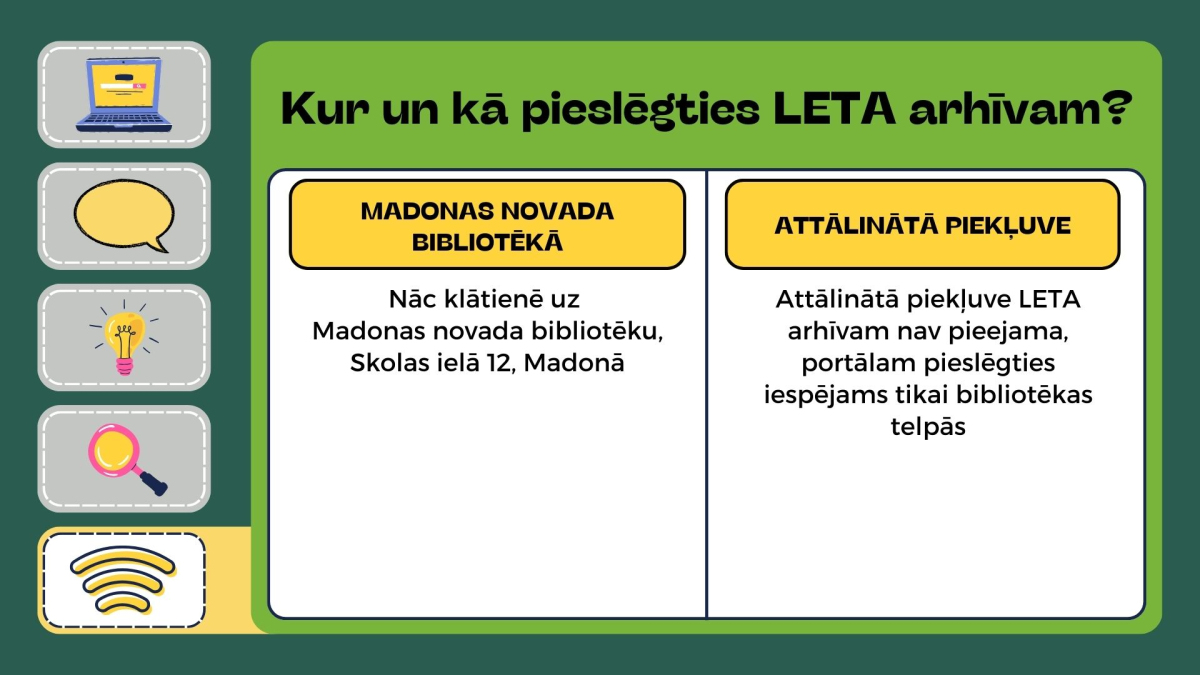 Madonas novada bibliotēka saviem lietotājiem piedāvā piekļuvi Nacionālās informācijas aģentūras LETA arhīvam BEZ MAKSAS.