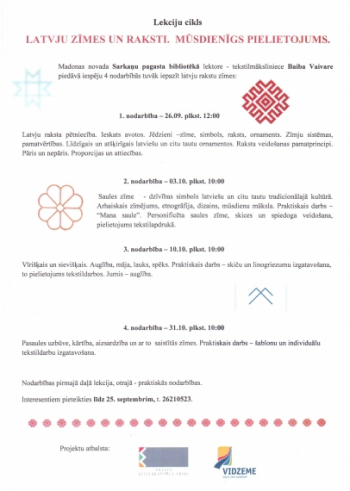 Lekcijas lasa A. Karlsone projekta „Ceļā uz savu tautastērpu” ietvaros (Latvijas valsts mežu atbalstītās Vidzemes kultūras programmas 2016 finansējums).