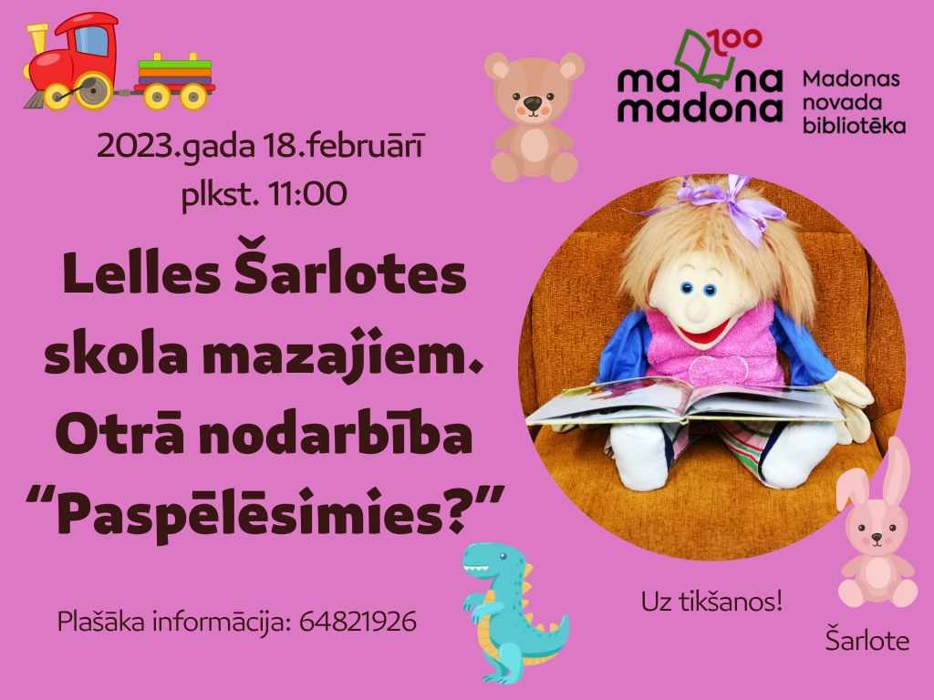 18.februārī plkst. 11:00 aicinām uz Lelles Šarlotes skolas mazajiem otro nodarbību “Paspēlēsimies?”.