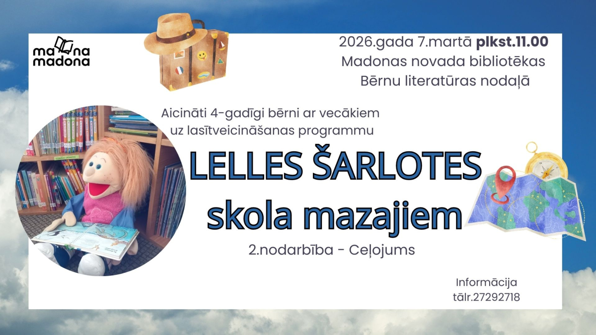 Lelles Šarlotes skola mazajiem ir lasītveicināšanas programma četrgadīgiem bērniem un viņu vecākiem. Kopā plānotas četras nodarbības, kurās bērni un vecāki iepazīs bibliotēku, grāmatas un lasīšanas prieku.