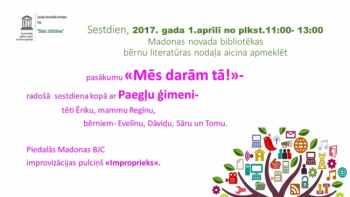 26.aprīlī plkst. 10:00 aicinām apmeklēt dzejas rītu - konkursu «…Tu lasi un nebeidzas pasaules stāsts», kas veltīts Madonas novada bibliotēkas 95. dzimšanas dienai. Madonas novada PII audzēkņi runās Ineses Zanderes bērnu dzeju.