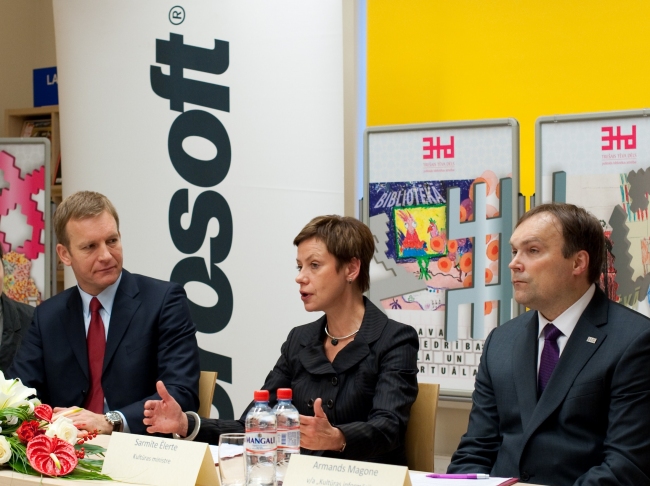 Sarmīte Ēlerte, Kultūras ministre, valsts vārdā izteica pateicību Microsoft par atbalstu un ieinteresētību Latvijas attīstībā. Viņa norādīja, ka šobrīd bibliotēkas ir kļuvušas par kopienu centriem un piedāvā plašu pakalpojumu klāstu lietotājiem. „Modernās komunikāciju tehnoloģijas globalizācijas robežšķirtni velk pāri ģeogrāfiskajiem rajoniem, un globalizācijas ieguvēji un zaudētāji būs visos kontinentos. Mūsu uzdevums ir būt globalizācijas vinnētāju pusē, tāpēc bibliotēka ir ārkārtīgi svarīgs instruments šī mērķa sasniegšanai,” uzsvēra Sarmīte Ēlerte. Viņa arī atgādināja, ka Microsoft iesaistīts arī citos projektos Latvijā, piemēram, Valodu krasta attīstīšanā, un Latvija ir ieinteresēta stiprināt turpmāko sadarbību.